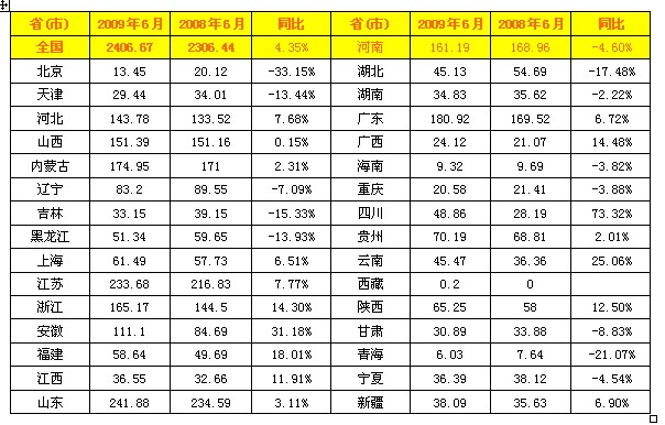 2009年6月全國(guó)火電發(fā)電量統(tǒng)計(jì)