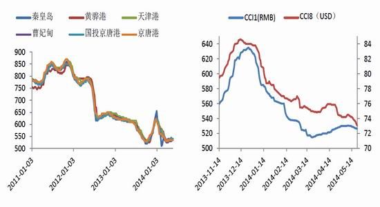 圖2:環(huán)渤海港口平倉價(jià) 圖3:CCI指數(shù)