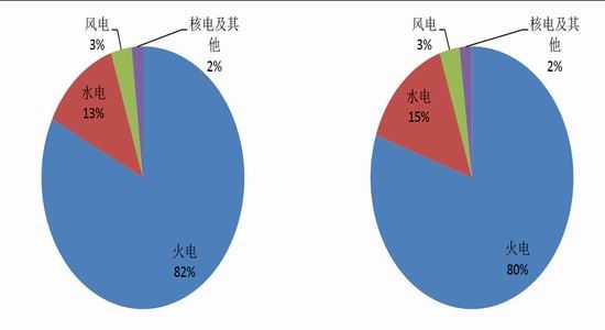 圖20:2013年各發(fā)電方式占比情況 圖21: 2014年各發(fā)電方式占比情況