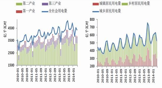 1 - 4月全社會(huì)累計(jì)用電17143.49億千瓦時(shí),累計(jì)同比上漲5.2%,第一產(chǎn)業(yè)累計(jì)用電254.3億千瓦時(shí),累計(jì)同比下降4.91%,第二產(chǎn)業(yè)累計(jì)用電1239.74億千瓦時(shí),累計(jì)同比上漲4.96%,第三產(chǎn)業(yè)累計(jì)用電2115.78億千瓦時(shí),累計(jì)同比上漲6.47%。