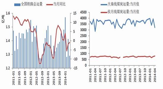 4月大秦線煤炭運(yùn)量3 212萬噸,1-4月大秦線煤炭運(yùn)量累計(jì)14 529.5萬噸,累計(jì)同比上漲0.2%,占全國煤炭鐵路運(yùn)輸總量的26.2%。侯月線4月份煤炭運(yùn)量789萬噸,1-4月份侯月線煤炭累計(jì)發(fā)運(yùn)2 874.1萬噸,累計(jì)同比下降4.7%。