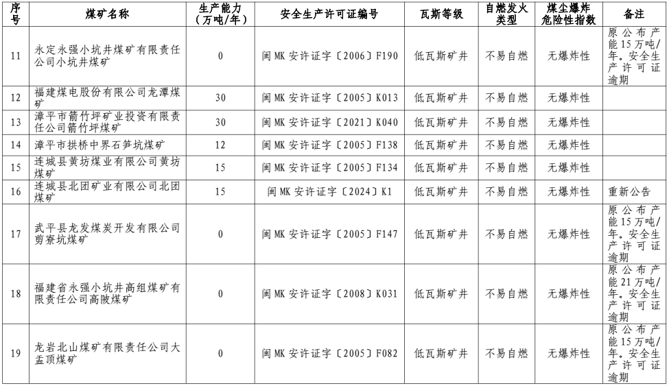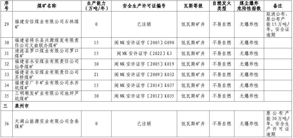 福建省發(fā)展和改革委員會(huì)關(guān)于公布截至2024年6月底全省建設(shè)生產(chǎn)煤礦產(chǎn)能和瓦斯等級(jí)的通知