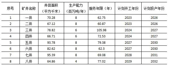 臺格廟礦區(qū)規(guī)劃礦井建設(shè)順序表
