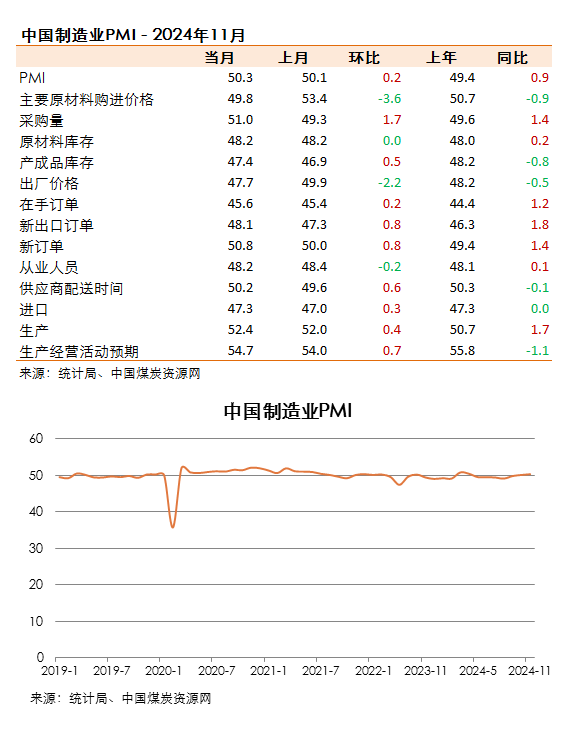 11月份,隨著一系列存量政策和增量政策持續(xù)協(xié)同發(fā)力,制造業(yè)PMI在景氣區(qū)間上行,升至50.3%,擴(kuò)張步伐有所加快。