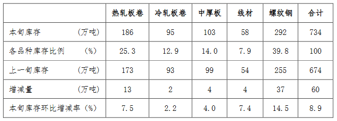 1月下旬,5大品種鋼材社會庫存環(huán)比均有所上升,其中螺紋鋼為增量和增幅最大品種,具體見下表。