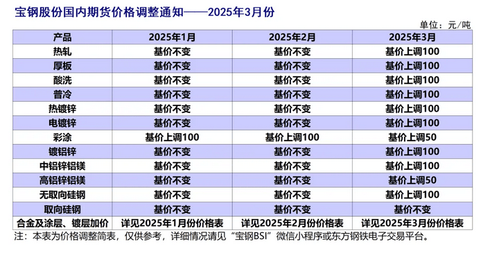 經(jīng)研究決定,寶鋼股份板材內(nèi)銷價格2025年3月份在2025年2月份基礎(chǔ)上調(diào)整公告如下(以下除特殊注明外,均為不含稅):